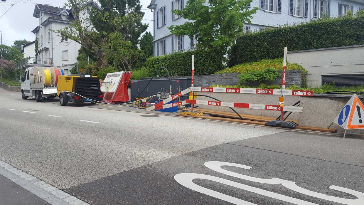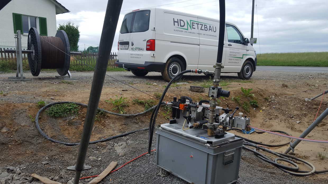 - Einziehen der Riffenrohren und Einblasen der Speedpipes und Mikrokabel