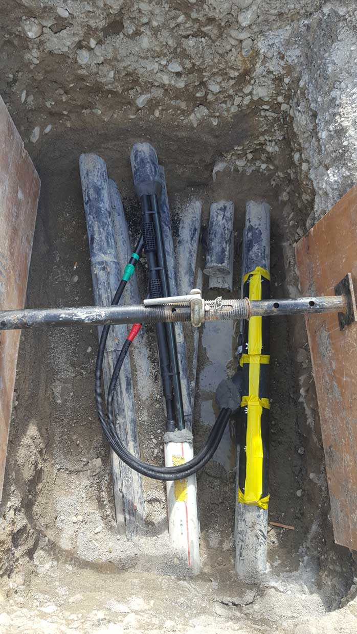 - Altersbedingte Auswechslung zwei 20 KV Mittelspannungsleitung, mit Montage von Verbindungsmuffen und Endverschlüssen